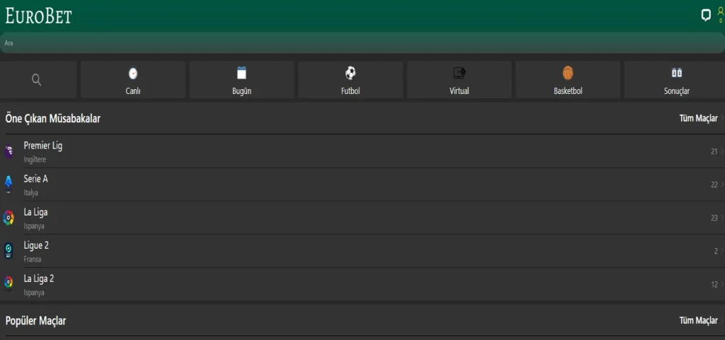 Eurobet bahis sitesi özelliklerinin genel listesi aşağıdaki gibidir ;